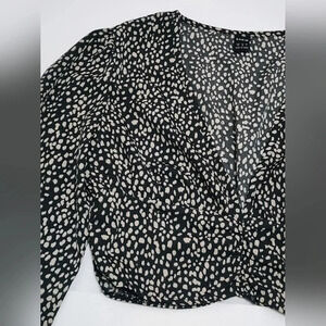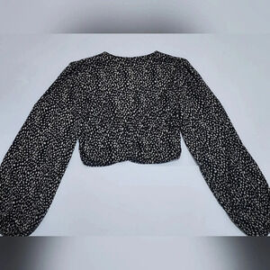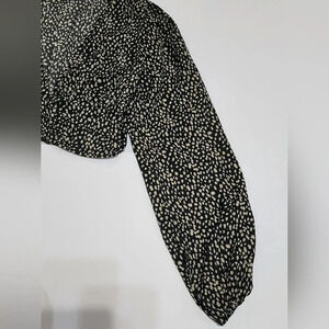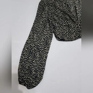 Shein Black Leopard Print Crop Blouse Bell Sleeves, sz XS