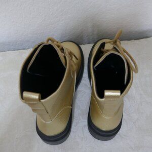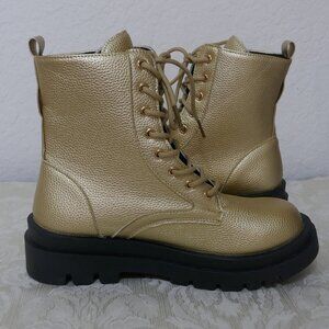 Gold Combat Mid Calf Lace Up Boots Zipper Detail Lug Heels Womens 43/12