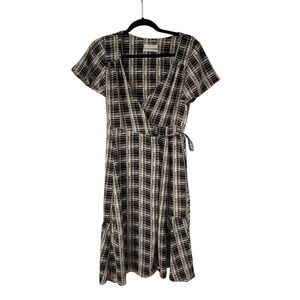 Urban Outfitters Dress Daphne Black Tan Check Midi Wrap High Low Womens