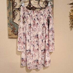 Pink Off-Shoulder Long Sleeve Sundress. Size Medium NWOT
