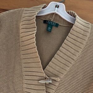 Ralph Lauren Tan Cotton V Neck Knit Sweater With Toggle Button