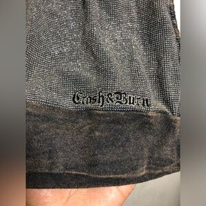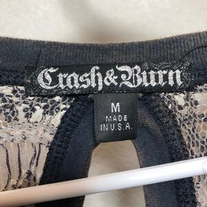 Crash & Burn Shimmering Charcoal Blouse with Lace Accents