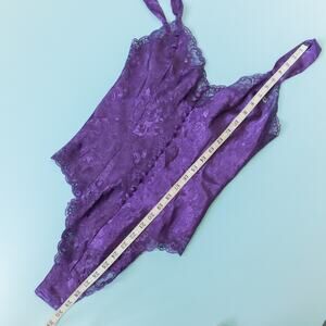 Victoria's Secret Gold Label Purple Satin Button Bodysuit Lingerie Womens Small