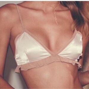 Y2k satin For love & lemons skivvies lingerie dainty bra top blush and brown S