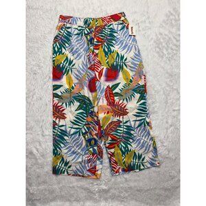 C&C California Multi-Color Tropical Floral 100% Linen Pull On Pants XL NW