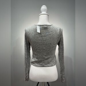 BRAND: Seduction SIZE: M Junior’s CONDITION: NWT COLOR: Light Gray MEASUREMENTS: 15.75” pit to pit, 17” shoulder to hem, 17.5” sleeve inseam MATERIALS: 65% rayon, 32% polyester, 3% spandex CARE: Hand wash cold NOTES: Crisscross wrap over bust, super soft Deadstock item Made in USA 🇺🇸