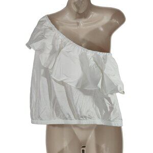 A New Day White One Shoulder Crop Top Women Size L Ruffle Neckline Banded Hem