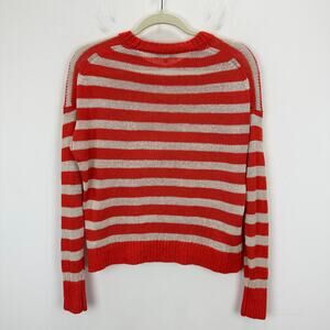 Madewell Linen Drop Shoulder Sweater Bright Flame Striped Nautical Small .