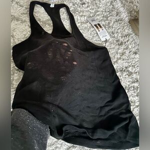 ‼️RARE‼️🎸ALO YOGA🎸🔥NWT🔥Pure Tank in Distressed Black—M