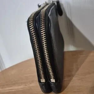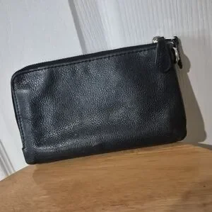 Coach New York Black Leather Wallet / Wristlet With Gold Toned Hardware