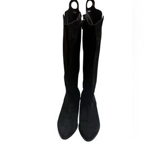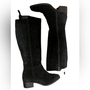Italeau Fiamma Nero black suede studded knee high boots with side zipper