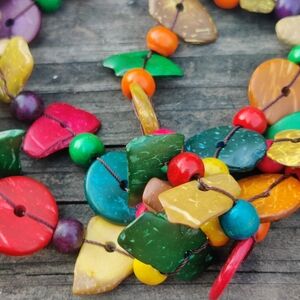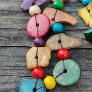 gorgeous colorful super long artisan made painted wooden boho necklace