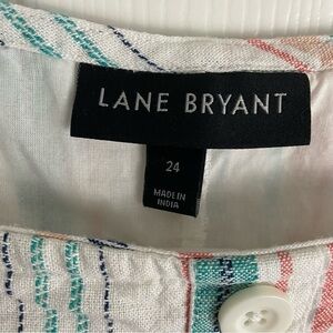 Lane Bryant Square-Neck Striped Top Linen Blend Coastal Beachy Plus Sz 24