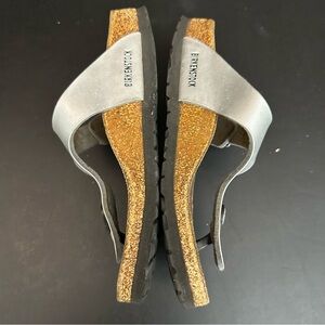 These ladies silver Birkenstock sandals are an EU size 36 and are in good pre-and condition. Please see photos as they are part of the description into the wear and condition of the shoes. Questions? Leave a comment below!