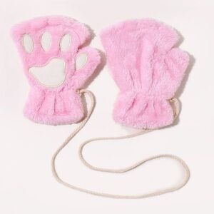 🐾 Adorable Pink Fuzzy Furry Soft Fingerless Paw Gloves 🐾