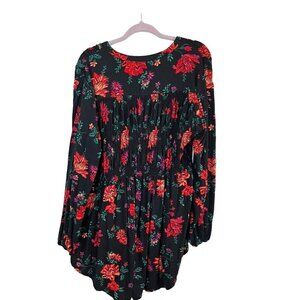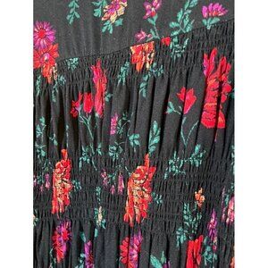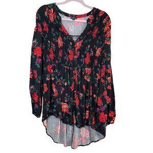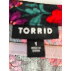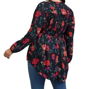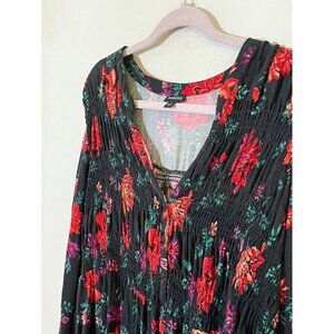 Torrid Top Women 1X Black Floral Smock Tropical Western Boho Hippie Festival 80s