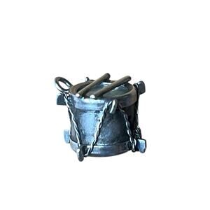 Vintage sterling silver charm featuring a double-sided Mother of Pearl inlay set in a drum-shaped design. The top and bottom both display luminous MOP, framed by a sculptural sterling silver setting with wire and rivet-style details around the sides.