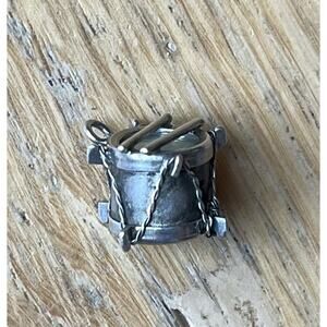 925 Sterling Silver Vintage Real Mother-of-Pearl Drum Charm Pendant Double Sided