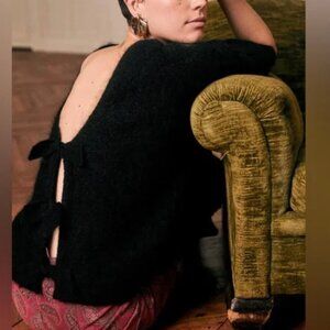 Sezane Aurette Jumper Sweater Black Noir French V Neck Bow Knit