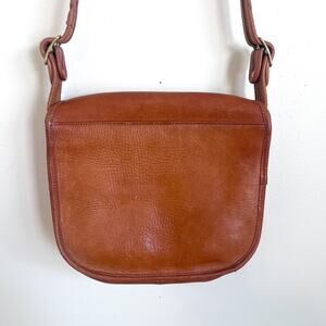 Vintage Coach Saddle Shoulder Bag British Tan Cowhide Leather Flap 70s USA 8101