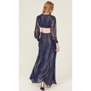 Delfi Collective Cerise navy blue metallic gold polka dot silk dress medium