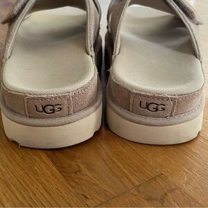 Comfy padded slide with adjustable Velcro strap. Tan suede color. Foam sole. Excellent preowned condition. Size 7.5.