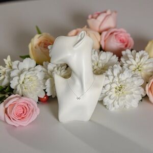 This elegant silver bow necklace adds a touch of sophistication to any outfit. Perfect for everyday wear or special occasions.