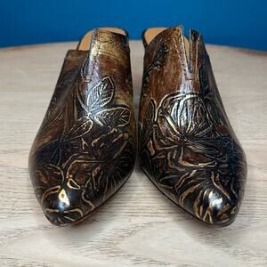 Patricia Nash Ruffina Leather Embossed Block Heel Mules Chocolate Brown Size 8.5