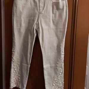 NWT LOFT Denim High Waist Flare Crop w/ Frayed Hem size 10 Curvy