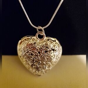 ✨️NEW Silver Heart-Shaped Filigree Necklace and Earrings