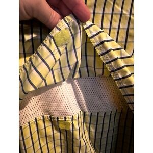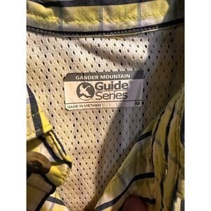 Gear up for adventure with this Gander Mountain Guide Series long-sleeve button-up shirt. Its classic plaid pattern in a vibrant yellow and navy offers a timeless look, while the mesh lining ensures breathability and comfort during active pursuits. Featuring two chest pockets with button closures, a convenient zippered pocket on the left side, and adjustable cuffs for a personalized fit, this shirt is as functional as it is stylish. The durable construction and thoughtful design make it perfect for hiking, camping, fishing, or casual everyday wear.