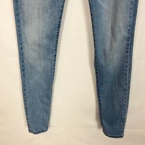 Levi's Denizen modern skinny jeans. Medium wash. Mid-rise. Metal button and zipper closure. Belt loops. 5-pocket. Minor puckering on left side near zipper. In good used condition. No stains, tears or holes.