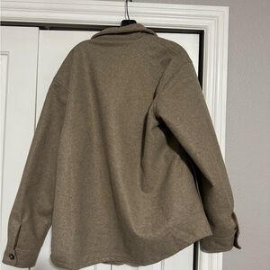 Classic light brown shirt jacket. Ideal for layering. Features button closure and chest pocket. Lined on the inside, women’s, used 2-3 times