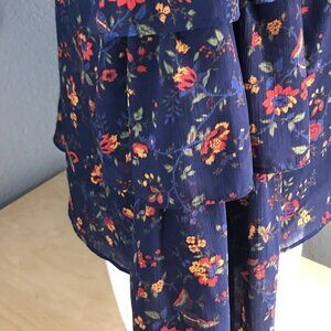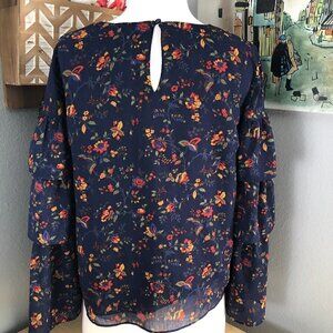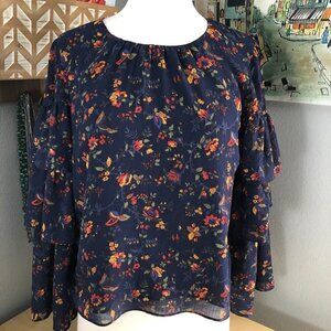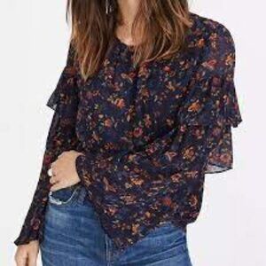 Madewell Floral Bell Sleeve Blouse - Navy and Red