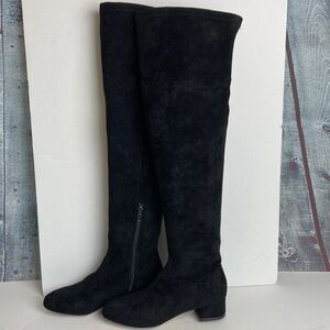 Anthropologie Black Suede Over-The-Knee Boots 1.5” Block Heel Sz 6 Witchy Office