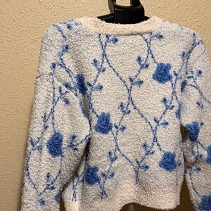 POL BERBER PLUSH Blue and White Floral Button Cardigan