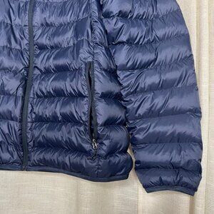 Eddie Bauer EB650 Down Puffer Jacket Navy Blue Full Zip Packable Mens Size Large