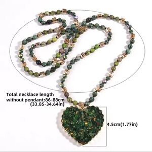 Elegant beaded necklace featuring a stunning green heart pendant. Perfect for adding a touch of sophistication to any outfit. 🌟 5-Star Trusted Seller – With Consistent Positive Feedback 📦 Fast & responsible shipping – most orders go out the same or next business day 📸 All photos and videos are mine – what you see is exactly what you’ll receive 🏡 Carefully stored in a clean, smoke-free, pet-free home 💜 I care about each order and always do my best to make your experience smooth and pleasant