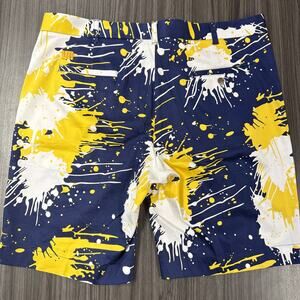 The Loudmouth Golf Shorts in men's size 40 are perfect for the active golfer. Made from a blend of cotton fabric, these plaid shorts feature a zip closure and pockets for convenience. The blue color and athletic style make them suitable for summer and spring occasions. With a regular fit and waist compression area, these shorts offer both comfort and functionality for a day on the golf course. Ideal for casual activewear, these Loudmouth shorts combine style and performance.