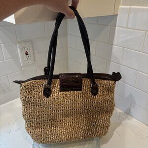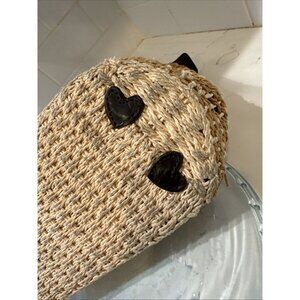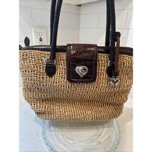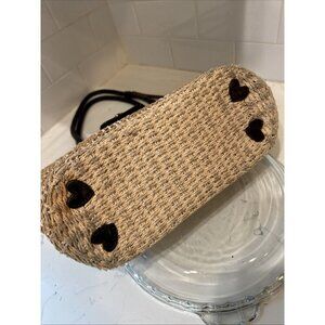 BRIGHTON Handbag Braided Leather Woven Straw Rafia Satchel Purse Heart Y2K