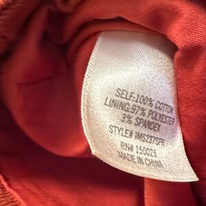 Vibrant rust colored mini skirt with intricate colorful embroidery. Features floral and geometric patterns. Perfect for a stylish look.