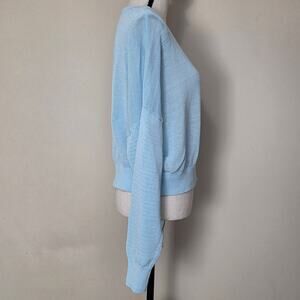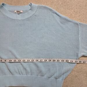 Madewell XL Pullover Cropped Long Sleeve Sweater Crew Neck Loose Knit Blue