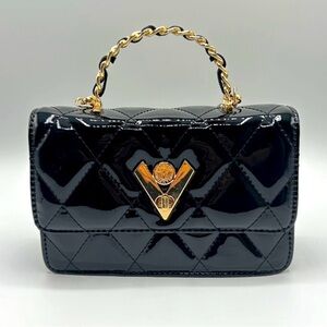 Valentino Orlandi Black Quilted Mini Bag with Gold Chain in Patent