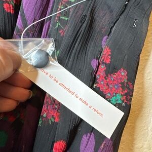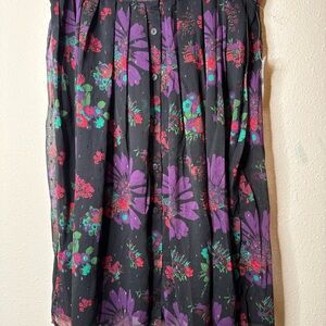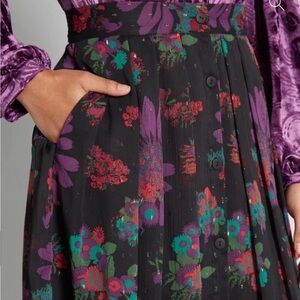 Modcloth Meow Bouquet Pleated Chiffon Midi Skirt Black Floral Button Front 18W