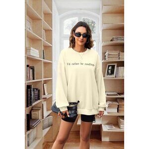 Women's Soft Cotton Embroidered Sweatshirt Reading Lover Gift Small