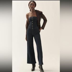 NEW! Anthropologie Pilcro Dark Denim Corset Wide Leg Jumpsuit - Size 12