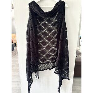 Black Knit Shaw Poncho with Arm Holes One Size Fits All
