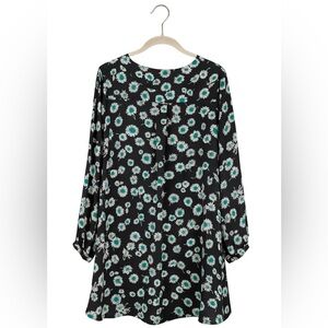 Turn heads in this gorgeous Express swing dress featuring a vibrant black and teal floral pattern. Designed with a flattering keyhole neckline and a flowy silhouette, this lined dress offers all-day comfort and effortless style. The pull-on design makes it easy to wear—perfect for everything from workdays to weddings.