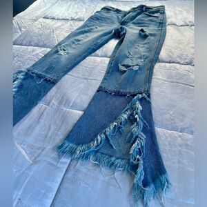 ZARA TRF Light Wash Destroyed High Rise Split Hem Flare Jeans | Size 2 / EUR 34
