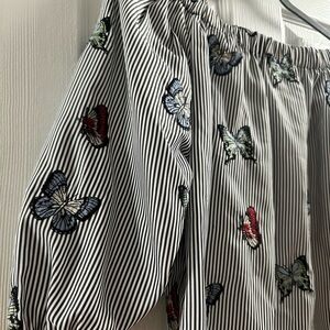 Zara Basic Embroidered Butterfly Off The Shoulder Striped Cropped Blouse Size S